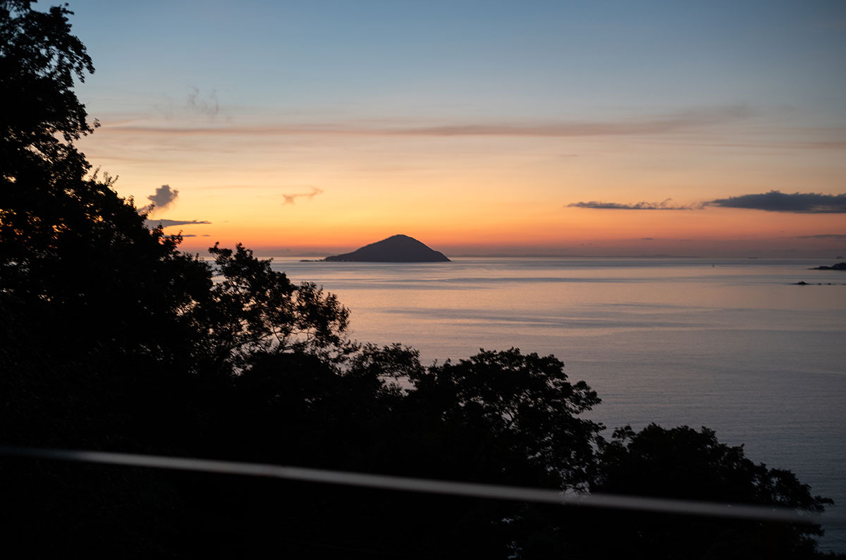 マジックアワーは姫島の向こうに青から橙色の美しいグラデーションを描いていた。