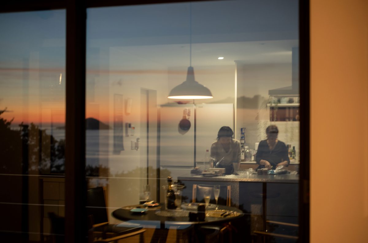 ご自身でデザインしたという自宅には、海が好きだった旦那さんの写真が海を向いて置いてある。