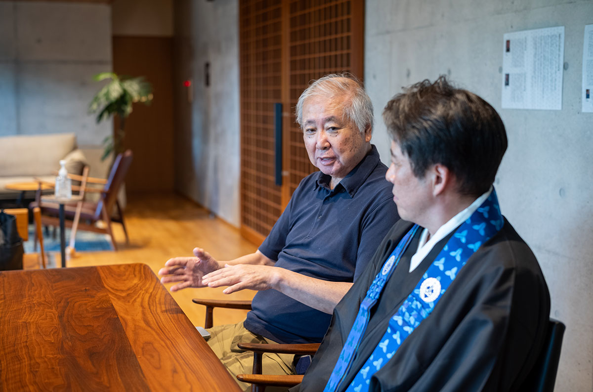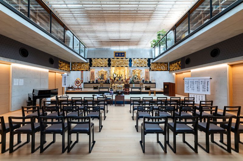 この本堂を建てる前、信暁さんは納骨堂や幼稚園、保育園の建設に関わっていて、その様子を身近に見ていた十七世信純さんは、何か新しいことに挑戦することは当然のように感じていたという。良いと思うものは慣習に囚われず取り入れるスタンスだ。