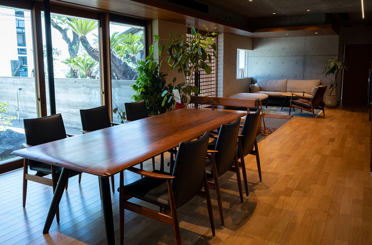 信純さん:「それでどこかの帰りに2人で糸島シーサイドファクトリーに伺って、色々見せていただいたんです。どの家具も素敵だったのですが、2階にあったBEATRIX(ベアトリクス)の、包み込むようなスタイルに一目惚れしてしまいました。早速古森さんにこういう家具を入れたいんですと伝えました。そうして建築に糸島ならではの繋がりとストーリーを持たせることができました」。