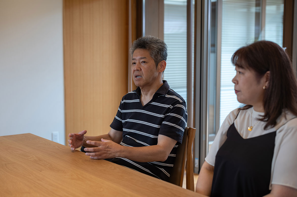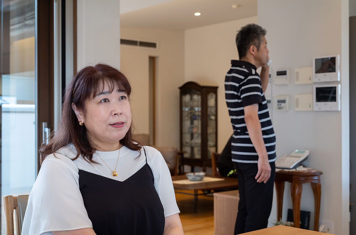 旦那様:「ショールームに何回も見に行かせていただいて、その時々の私たちの要望に合致したものに巡り会うことができました。スタッフさんに相談しながら実際に見られるのが嬉しいですし、メンテナンスの相談もできますから」。