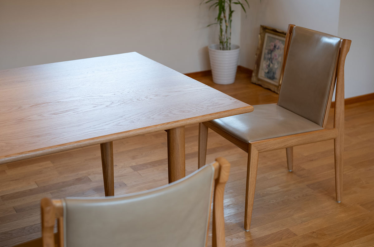 奥様:「ダイニングテーブルの買い替えのタイミングにはもう、Ritzwell以外は考えられなくなっていました。建て替える前に使っていた家具は、結婚当初に私の父が買ってくれたもので、全部手放したくない気持ちがありました。でも不具合が出た順番にお別れして、Ritzwellの家具に入れ替える形でお迎えすることになりました」。