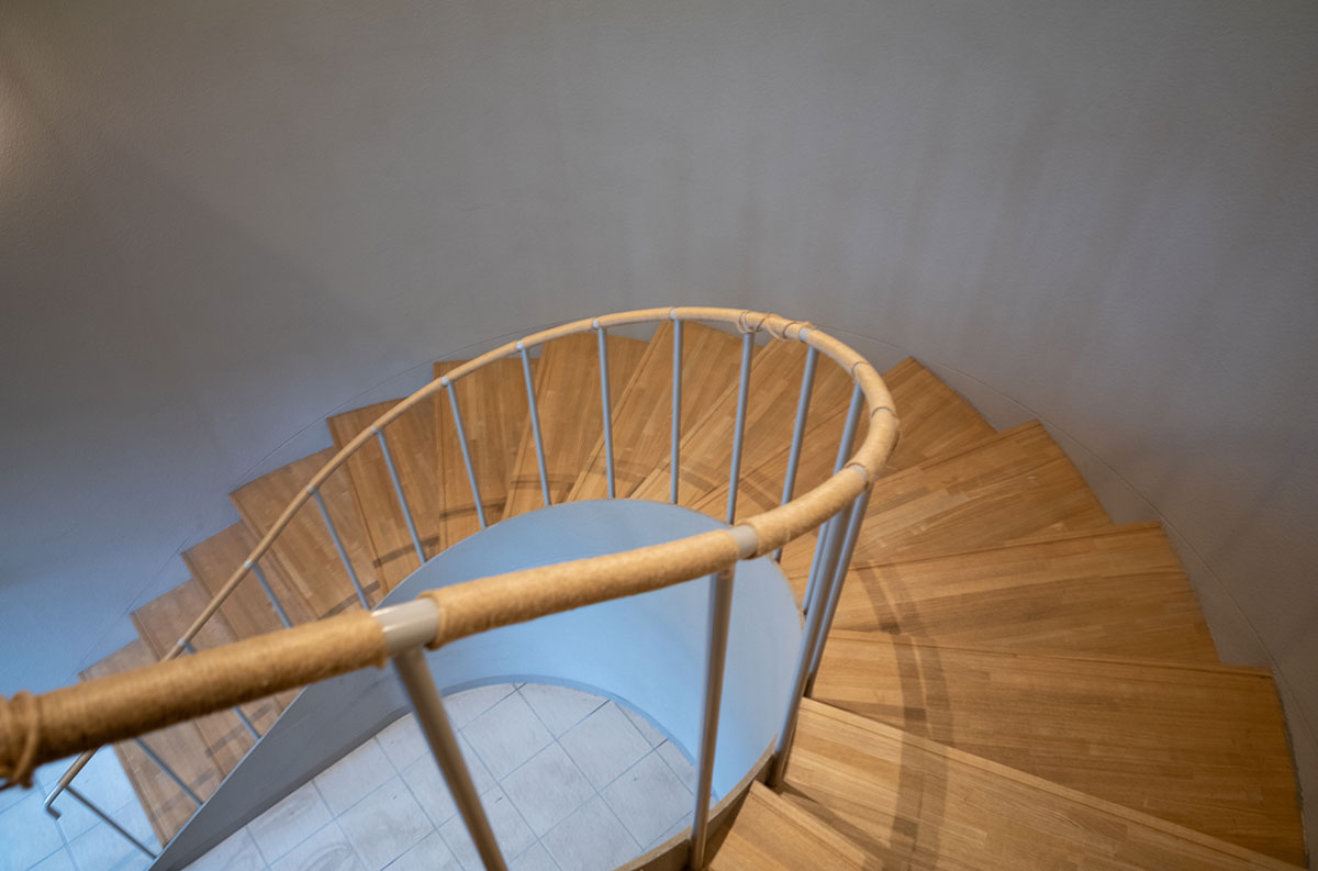 螺旋階段もお客様を誘うだけではなく、旦那様の気持ちの切り替えを助ける空間でもある